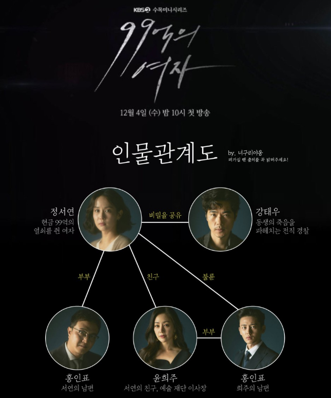 kbs에서 새로 시작하는 드라마 99억의여자 인물관계도에 대해서 정리를 하려고 합니다.