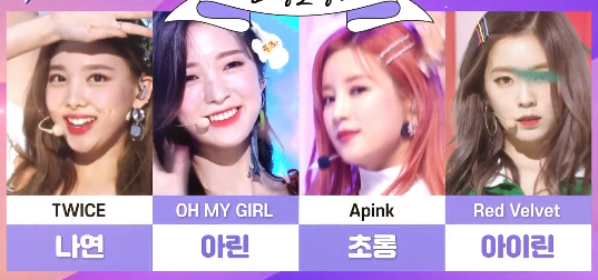 트와이스의 나연, 오마이걸의 아린, 에이핑크의 초롱, 레드벨벳의 아이린으로 구성이 되었습니다.