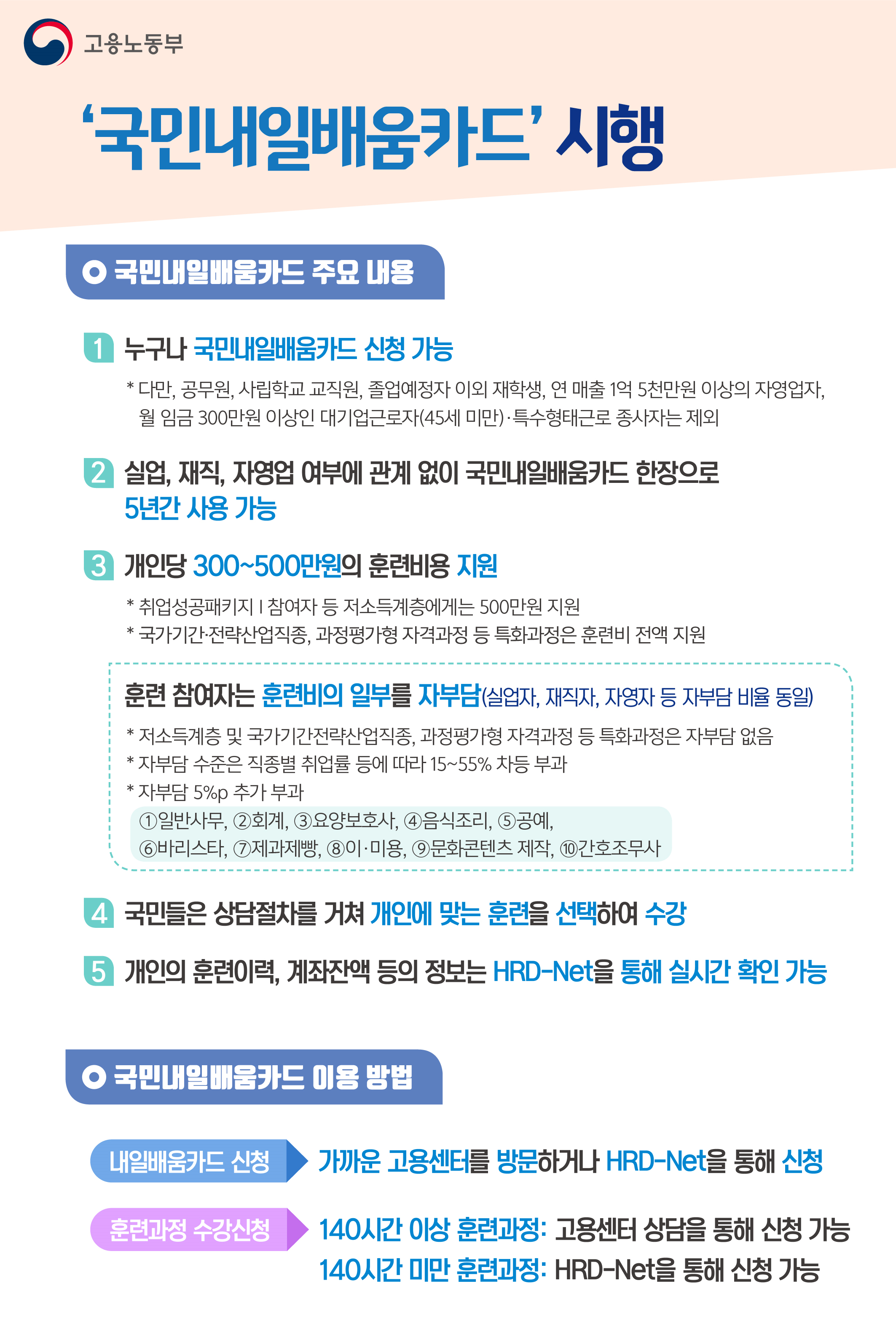 그리고 국민내일배움카드의 지원기간과 혜택이 길어졌습니다.