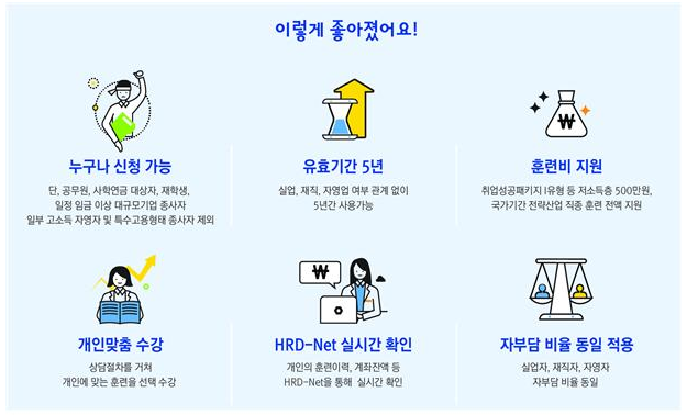 구직자 재직자 뿐만아니라 이제 직업 훈련을 희망하는 누구나 받을 수 있는점이 장점입니다.