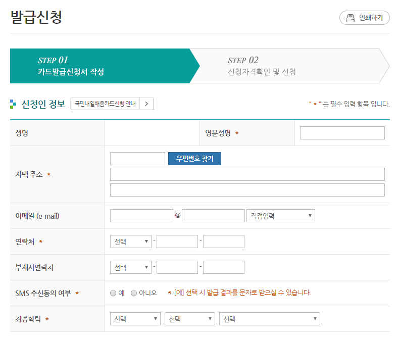 신청창에서 모든 필수 항목을 입력후 다음을 눌러주고 최종으로 신청을 하면 마무리가 됩니다.
