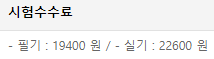 시험 수수료는 필기 : 19,400원, 실기 22,600원입니다. 토익이라던지 다른 어학시험이나 외국쪽 자격증 보다는 확실히 저렴하다고 말을 할 수 있겠습니다.