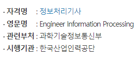 금일 두번째 시험에 대해서 소개를 합니다. 국가 공인의 기사시험인 정보처리기사입니다.