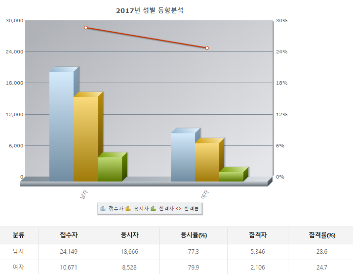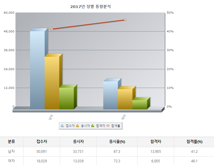 2017년은 필기 40%때 실기 20%때의 그래도 나름 기사 다운 통계를 보여준다.