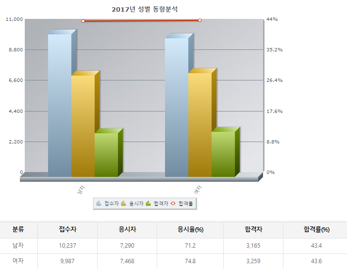 내가 응시했던 2017년 이때는 40 / 50 %의 합격률이 나왔다. 위랑 비교하면, 실기가 합격률이 매우 높다.