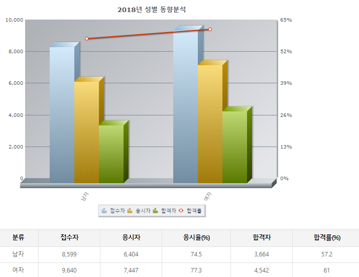 2018년기준으로 필기 / 실기 순서의 합격률임.
