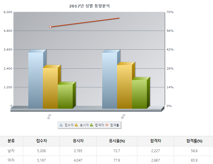 접수자 응시자가 확실히 적다. 인지도가 낮고 알고있는 사람이 적다.