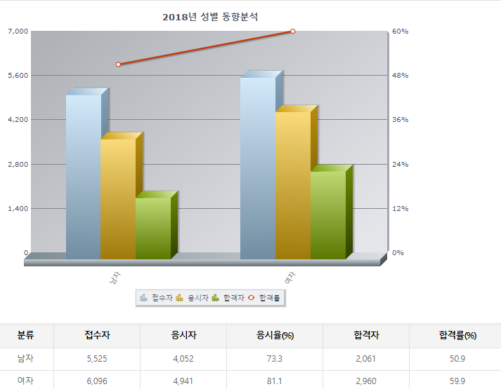 모두 50%때가 넘었다. 아까 작성했던 정보처리기사도 2018년이 매우 높았는데