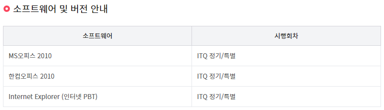 시험에 사용되는 어플리케이션 버전은 모두 공통이다. 2010버전을 주로 사용한다.