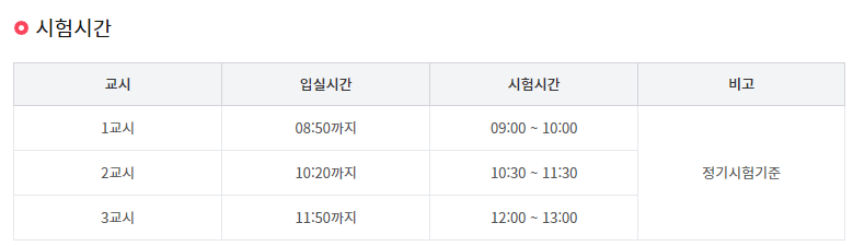 시험시간은 한시간이지만 입실시간도 정해져있다. 꽤 장시간 시험을 봐야한다.