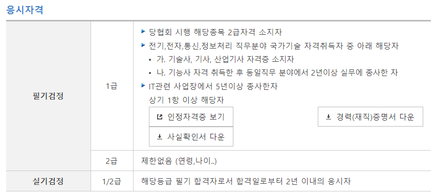 지금은 1급 응시자격요건이 생기기도했네요. 조건은 3가지입니다.