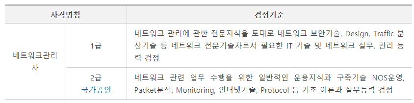 금일 마지막 자격증 소개는 네트워크 관리사입니다.