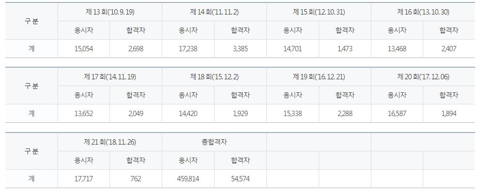 응시자격을보면 제한이 없습니다. 학벌이라던지 경력등이 없기 때문에 누구나 응시가 가능합니다.