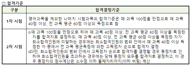 과목별 40문항이며 객관식 5지 택일형으로 절대평가하여 합격자를 결정합니다.
