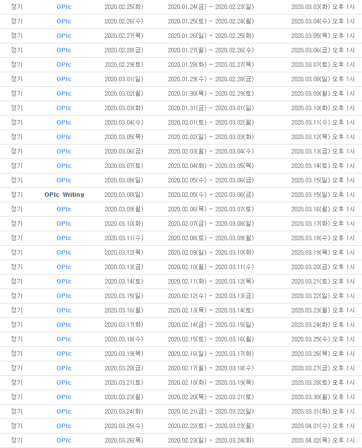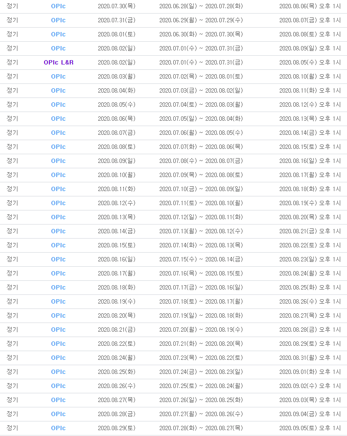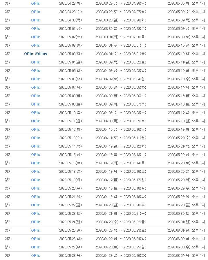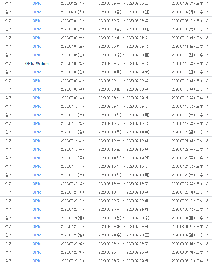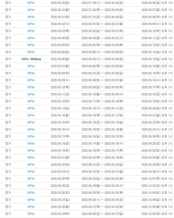 오픽 시험은 거의 연간 모든날에 시험이 있다고 생각해도 될정도로 대부분의 날이 시험일입니다.
