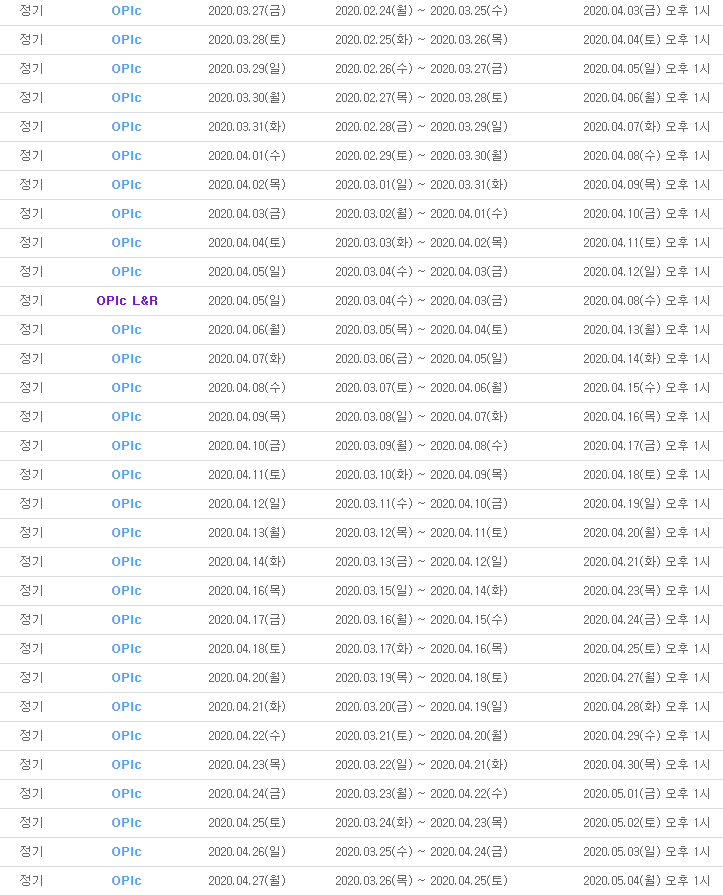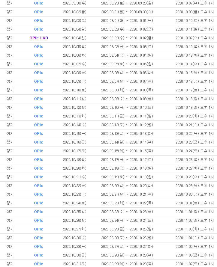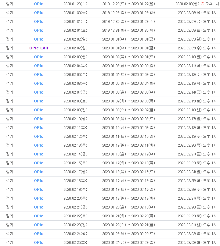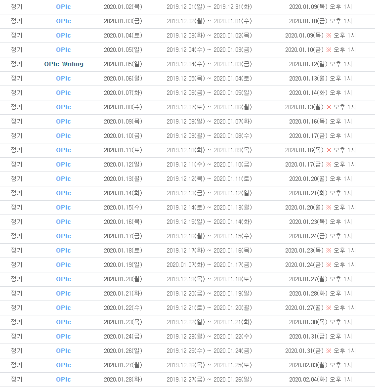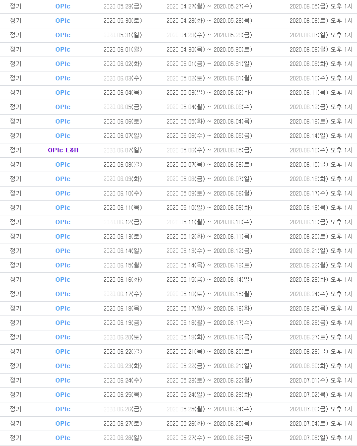오픽 시험은 거의 연간 모든날에 시험이 있다고 생각해도 될정도로 대부분의 날이 시험일입니다.