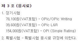 오픽 응시료는 꽤 비싼편으로 78,100원입니다. 그렇기 때문에 1회에서 2회내로 최대한 빨리 합격을하고 끝내는게 경제적으로 가장 좋습니다. 다른 기사자격증이나 일반 시험들에 비해서 어학쪽이 좀 비싼편에 속합니다.