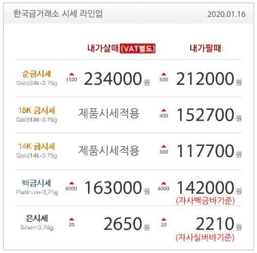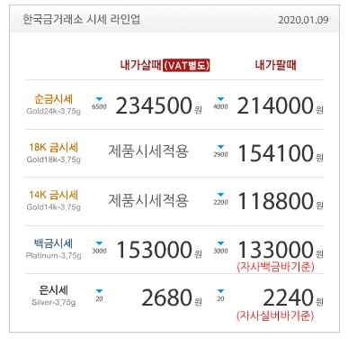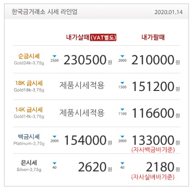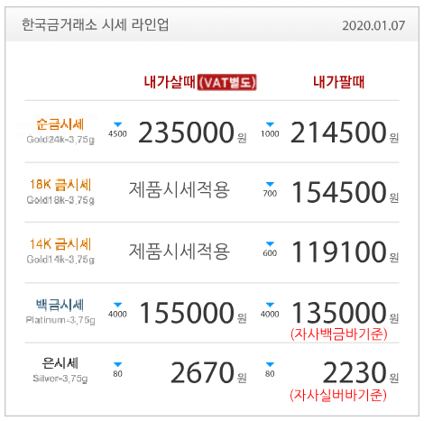 시세의 기준점은 순금은 3.75g 1돈기준이다.