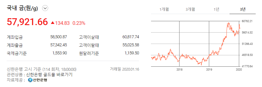 3년단위는 순금1돈 3.75g기준이다. 2019을 기준으로 크게 상승을 한게 보이기 때문이다.