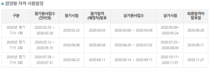 2020년 화공기사 정기 시험일정은 총 3회로 구성이 된다.