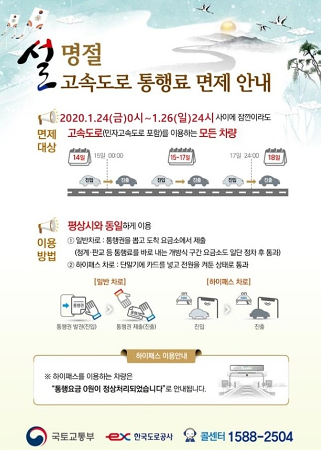 설날 고속도로 통행료 면제는 3일간 이루어집니다.