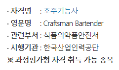 조주기능사외에 다른 음료 자격증은 바리스타 정도 있다.
