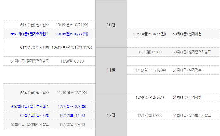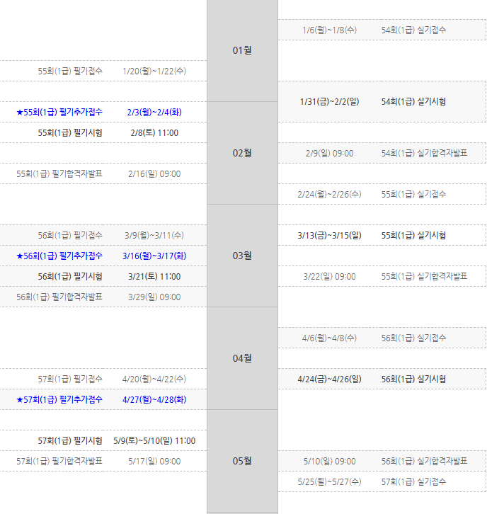 시험일정 2020년 1급