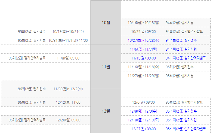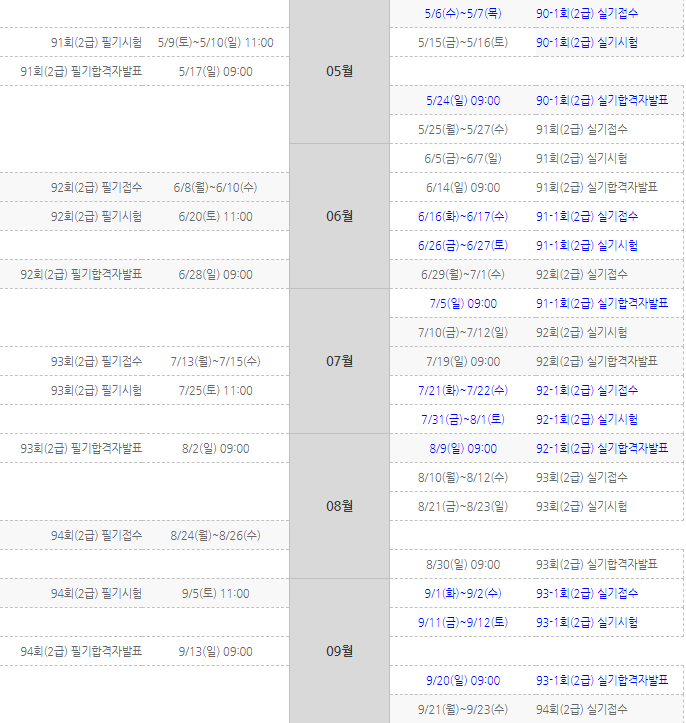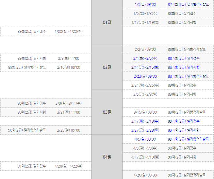시험일정 2020년 2급