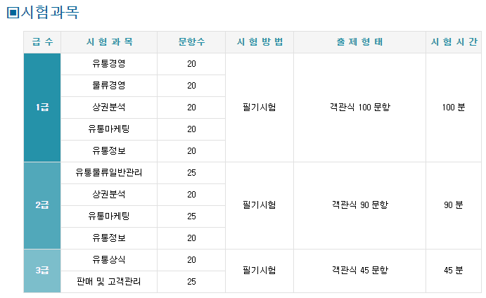 유통관리사 시험일정 과목