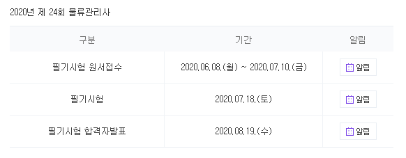 2020년 24회 물류관리사 일정