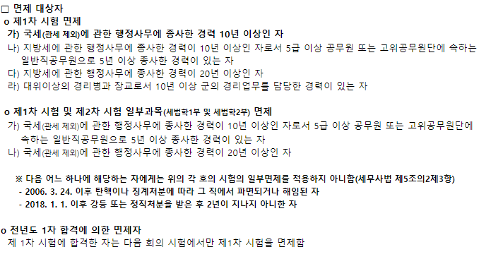 제1차 시험 및 제2차 시험 일부과목(세법학1부 및 세법학2부) 면제