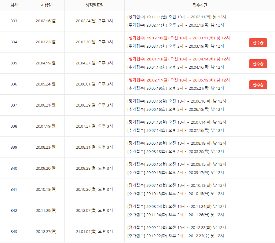 모두 일요일에 시험이 이루어진다. 토익에 비해서 시험일이 적은이유는 아마도 JPT 일본어 시험은 수요가 적고 볼사람만 보기 때문이라고 생각을한다. JPT 시험일정 2020년을 보면 정기접수의 기간이 꽤 길다 또 추가접수기간은 짧기 때문에 왠만하면 정기접수가 좋다고 생각을한다.